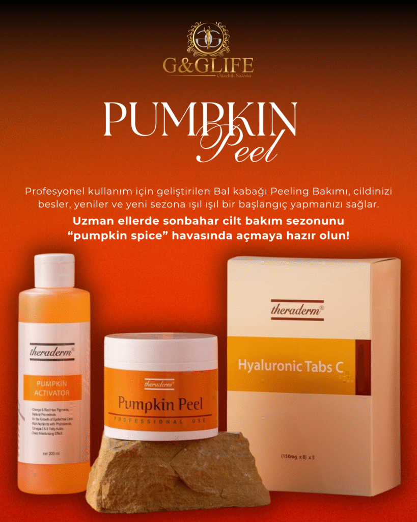 Pumpkin Peel Bakım, balkabağı enzimleri, AHA asitleri, vitaminler ve antioksidanlar içeren özel bir cilt yenileme peeling işlemidir. Özellikle yenileyici, leke giderici ve anti-aging etkisi ile son yılların en popüler medikal cilt bakımlarından biridir.