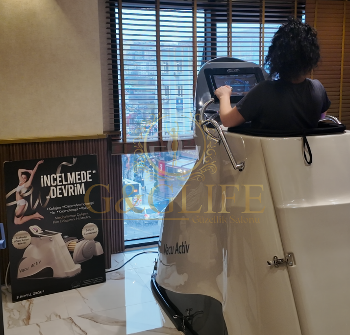 Vacu Activ, vakum teknolojisi, ozon terapisi, infrared ısı, kolajen desteği ve aroma terapiyi bir arada sunan yeni nesil bölgesel incelme ve selülit giderme cihazıdır. Kabin içindeki düşük atmosferik basınç sayesinde haftada ortalama 5000 kalori yağ yakımı sağlar. Ödem, iltihap ve toksinlerin vücuttan atılmasına destek olur.